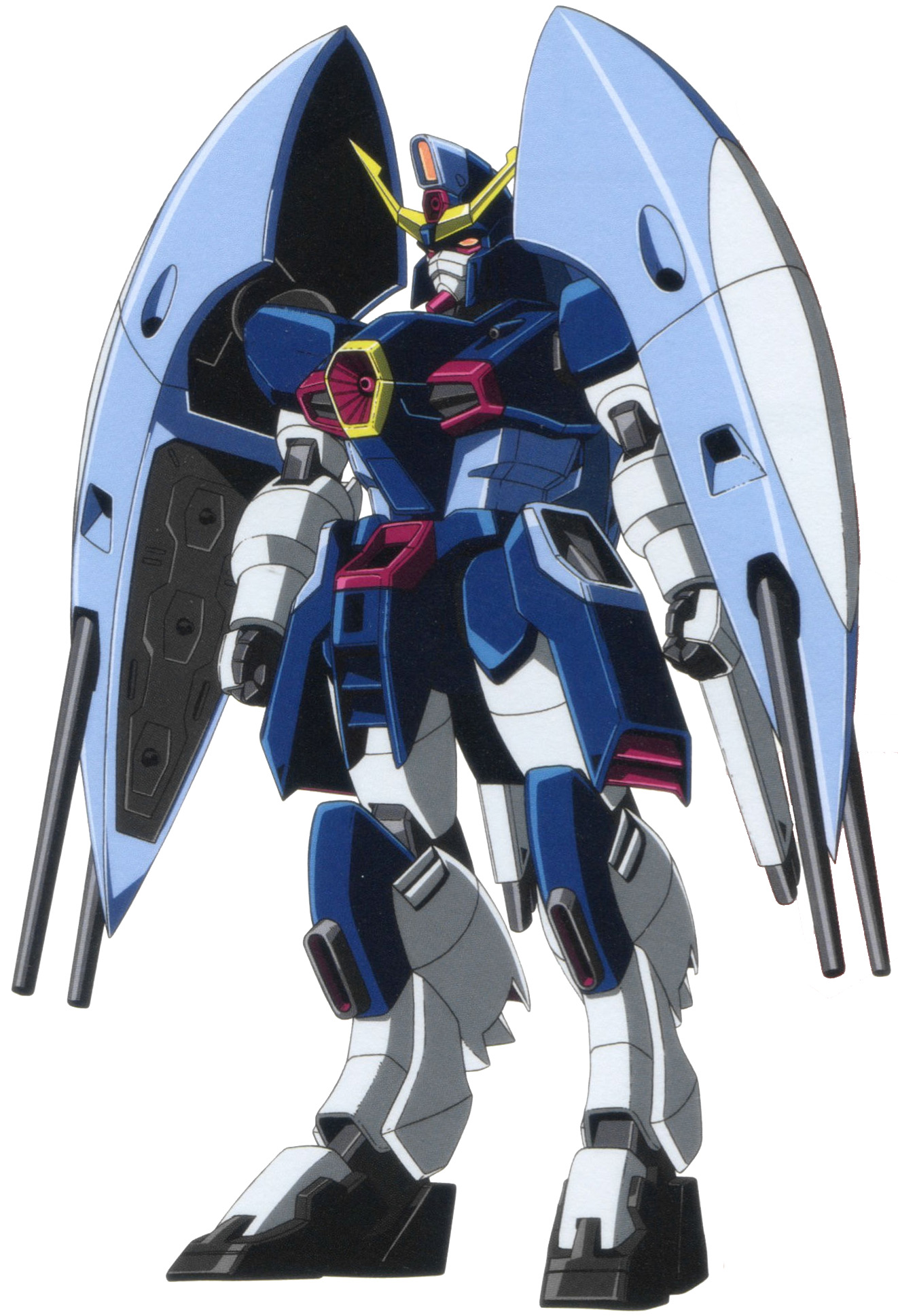 The height of this though, is the usage of the Gundam. G Gundam, After War, and Wing all utilized multiple Gundam units, but each held a central meaning. Within G, each unit is representative of the nation competing, a play on the original RX78-2 unit which held significance in its design as being distinctly Japanese, a nuclear equipped mechanical samurai. After War plays on the idea of the wandering samurai, drawing further on that initial idea. Wing is where the series falters, clearly just utilizing the Gundam units to denote the "main cast", but that's still of some significance.