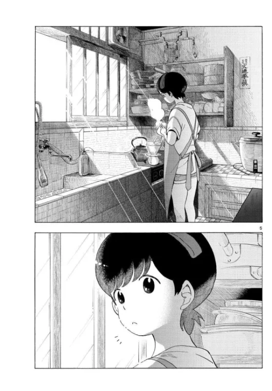 The Kitchen, that space that is more immaterial than material, where the banal takes shape, is what gives this wonderful story its beauty and quality. The plot doesn't allow any stain on its endless peace. Its structures are not swayed because they do not allow themselves to be swayed, they cannot and should not be disturbed. The utopia of his narrative works because it is utopian, it is utopian because it is ideal, it is ideal because it is desirable, and it is desirable because it is perfect. Maiko-san's world needs to be unshakeable in order to exalt the beauty of normality. And in its search for an eternally perfect normality, that's where we find total abnormality, the fruit of this absurdly unattainable perfect world. A world where you always do your best, where you always have someone to support you, that someone who motivates you to go after what you're destined to conquer. With two alien protagonists, endowed with human qualities that are immensely desired and rarely achieved, who serve as inspiration and motivation, inspiration not only to carry out challenging and complex activities, but to simply carry out our lives in the best possible way, in the most mundane accomplishments possible, in the most mediocre, banal and passionate way possible. All of this, just for the sake of any other day, just like a slice of our tiny life.